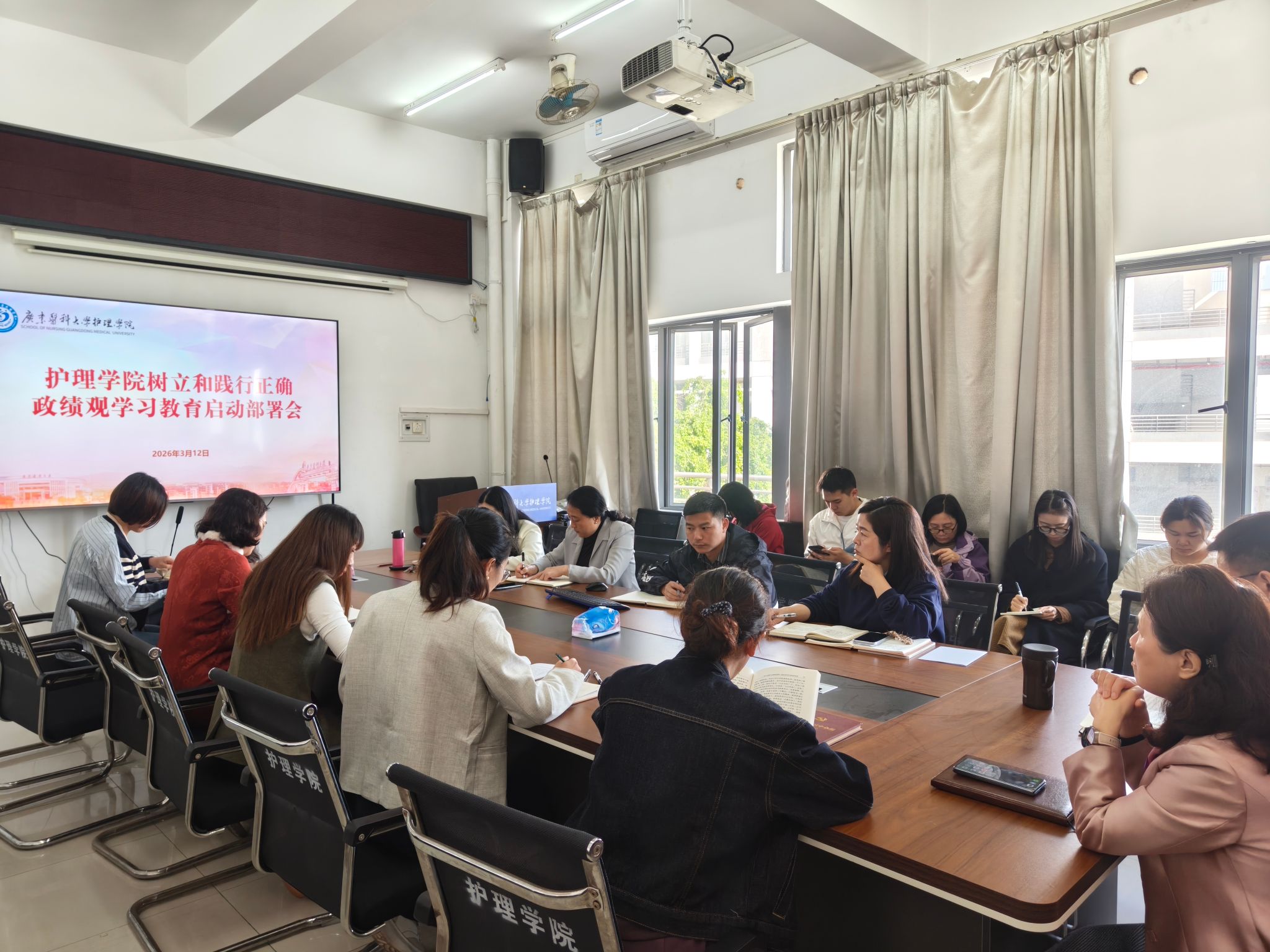 3月12日上午,护理学院在316会议室召开树立和践行正确政绩观学习教育启动部署会,学院班子、各党支部书记、纪委委员、各系室主任和辅导员参会,会议由学院党委书记王辉群主持。